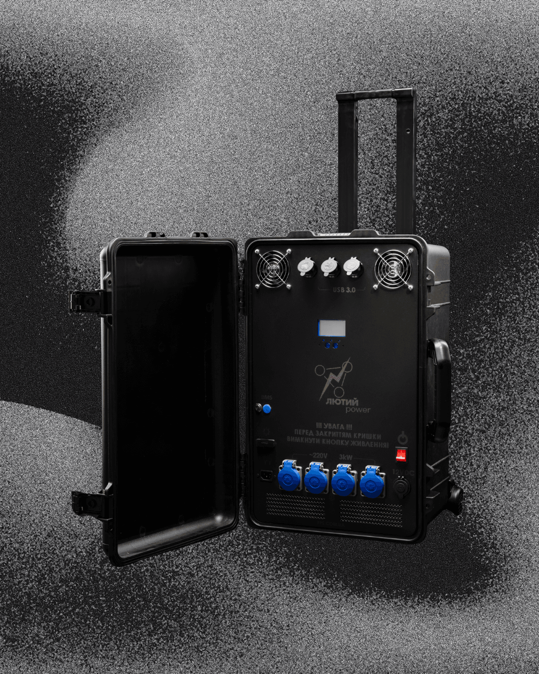 Станція розроблена спеціально для інтенсивної експлуатації. Завдяки компактним габаритам 625×420×340 мм та вазі 45 кг, вона залишається мобільною та зручною для транспортування. Це універсальне рішення для військових підрозділів, волонтерів і спеціалістів, які потребують потужну та надійну зарядну станцію для військових та польових умов.